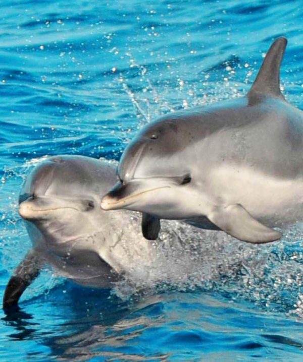 A diferencia de las tímidas ballenas, los delfines son extremadamente sociables y disfrutarán nadando en la ola de proa del barco, deleitándote con sus acrobacias.